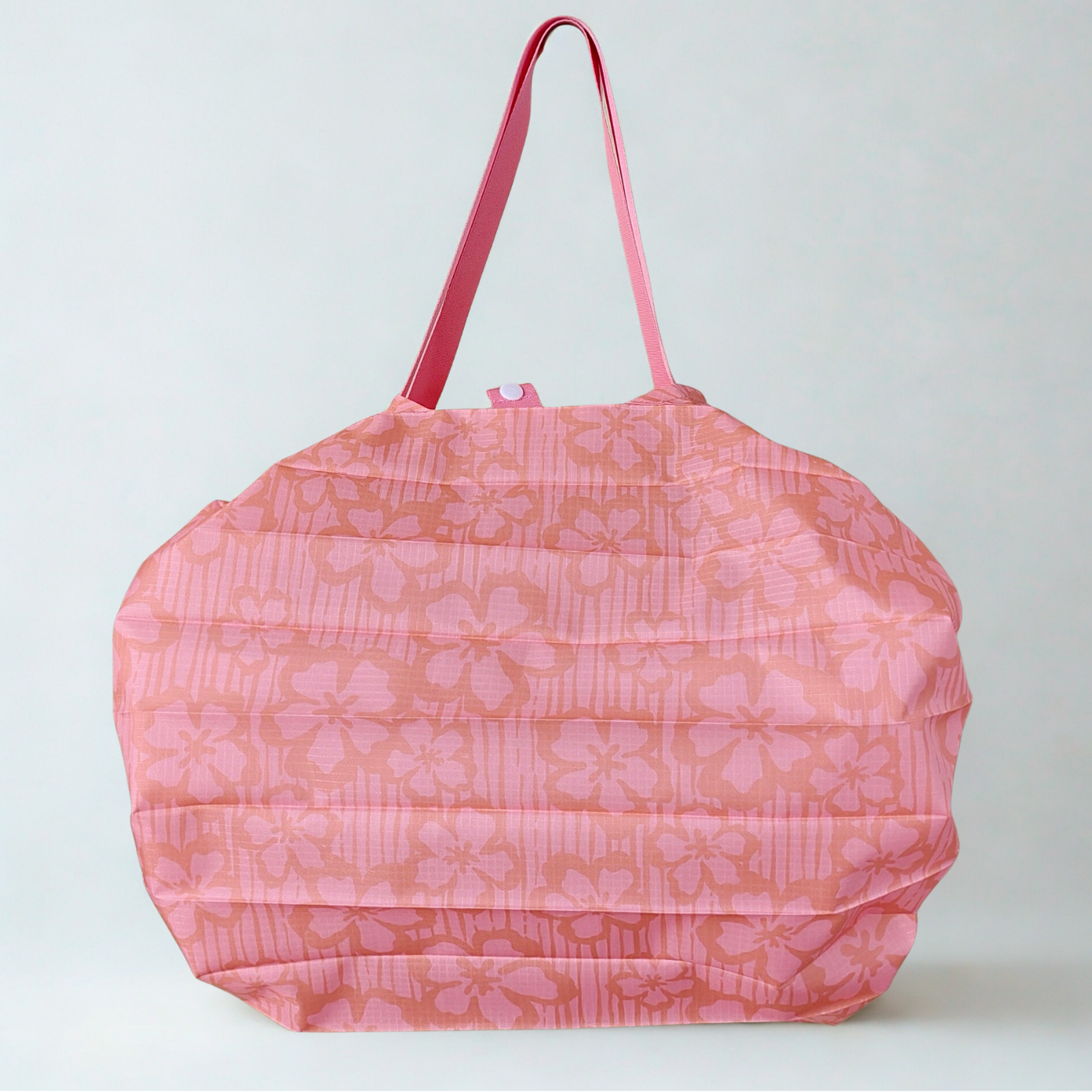 Embrace the festive spirit with this eye-catching tote featuring a lively coral pua stripe pattern, a delightful creation by designer Tiare Koba perfect for Valentine's Day and Lunar New Year celebrations.